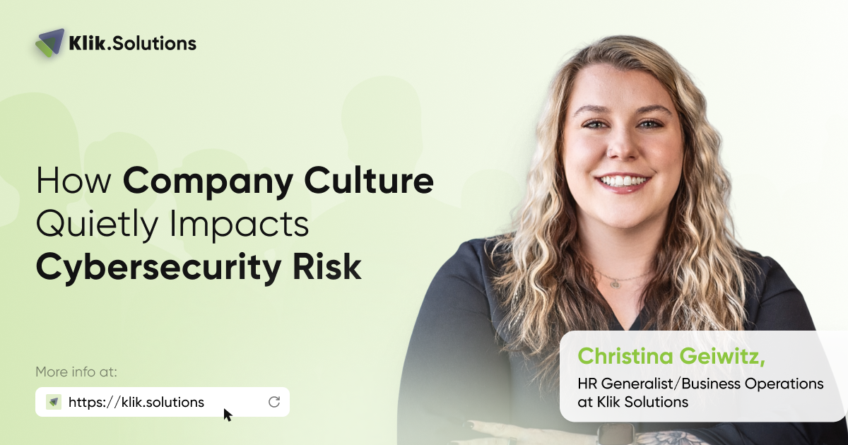 Christina Geiwitz, HR Generalist/Business Operations knows all too well about company culture. “Culture and cybersecurity are more connected than people realize. From an HR perspective, security isn’t just about systems — it’s about behaviors.”